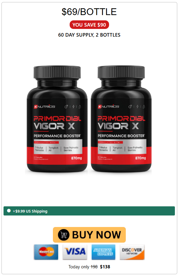 Primordial Vigor X is a medical strength proprietary male enhancement formula that has been developed to enhance your sexual virility, vitality, and vigor. Primordial Vigor X is enriched with advanced pro-sexual nutrients which work synergistically to ramp up sexual stamina, increase staying power, and above all, boost your sexual confidence. Primordial Vigor X multi-action formula optimizes testosterone levels to restore sex drive and libido, while increasing blood flow to the penis to help achieve rock-hard erections on command. With Primordial Vigor X , you can regain all the sexual power you once enjoyed and more!